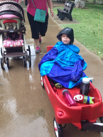 This morning while Blake played outside on his new play set I got a great workout in! I deleted the picture of my set up but I took my computer and yoga mat outside. Double duty! Got in my workout and watched him play plus Cooper got to run around like the crazy dog he is! B joined me a few times for some of the moves he liked. He said, "squats, I know those!" Ha he is used to working out with me or watching me workout! So while we were outside he got pooped on by a bird for the first time ever! I laughed because he didn't even realized that he had black goo all down the back of his head and shirt! Oh I deleted the picture proof earlier too. What was I thinking? It was so funny! After we cleaned his head we also went for a run! First one in a long time but it was a good one! Apparently I deleted all my pictures from before noon before I uploaded them. (Note to self, dump pictures from phone to computer more often!)